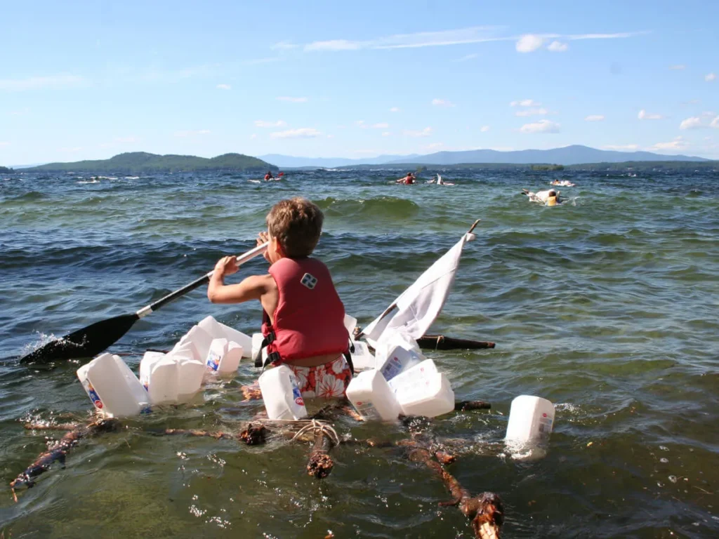 On Sunday afternoons, instead of offering many different activities, the entire camp comes together to participate in one large, all-camp activity – Kabeyun Olympics or World Cup Soccer; camp-wide Capture The Flag or Staff Hunt. Sometimes there are brand-new additions to the lineup of all-camp activities, brought by new creative energies like the Builders’ Challenge, featuring teams of campers building and launching rafts made entirely of milk cartons and tree limbs in small cove. Anything’s possible when over one hundred campers and counselors come together!