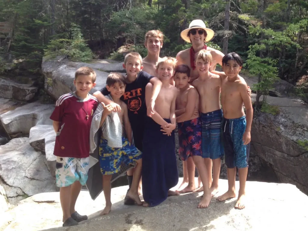 The youngest three cabin groups, up to about eleven years old, are made up of six boys; the other nine cabins have ten boys. Regardless of the number of campers, each cabin is overseen by three counselors. The Kabeyun program is focused on the individual boys rather than contrived groups, but the cabin group is central to a boy’s experience and there are plenty of shared experiences to complement a boy’s individual pursuits.